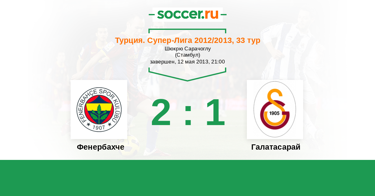 Турция. Суперлига 16.12.2012 Галатасарай Логотип футбольный клуб Галатасарай (Стамбул) 2:1 Логотип футбольный клуб Фенербахче (Стамбул) Фенербахче