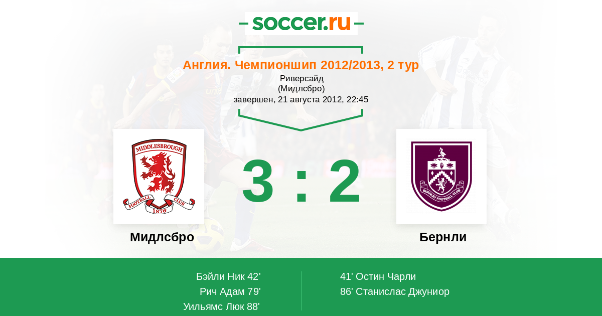 Протокол матча Мидлсбро против Бернли