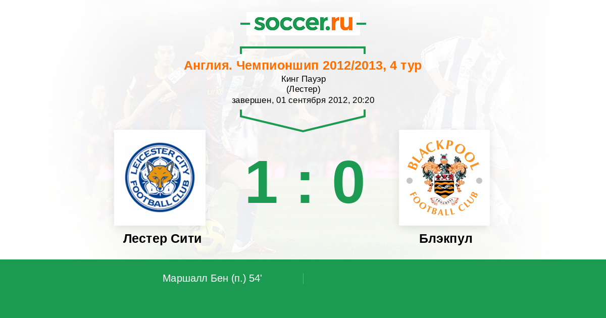 Протокол матча Лестер Сити против Блэкпул