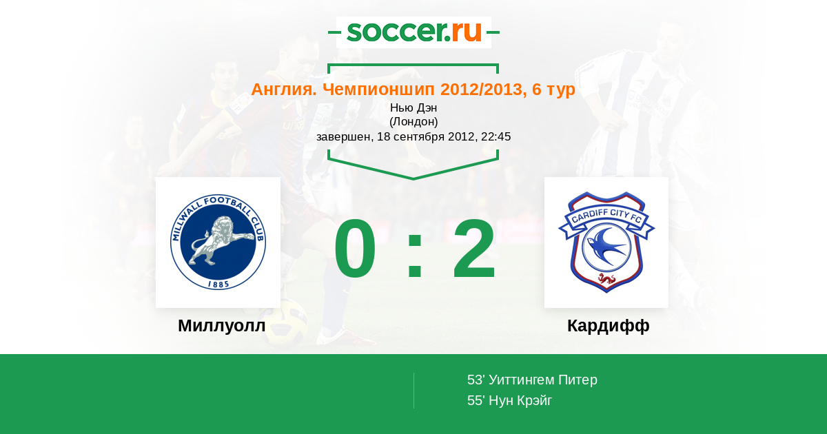 Протокол матча Миллуолл против Кардифф