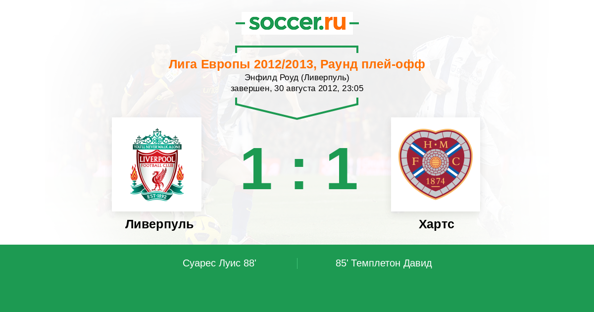 Протокол матча Ливерпуль против Хартс