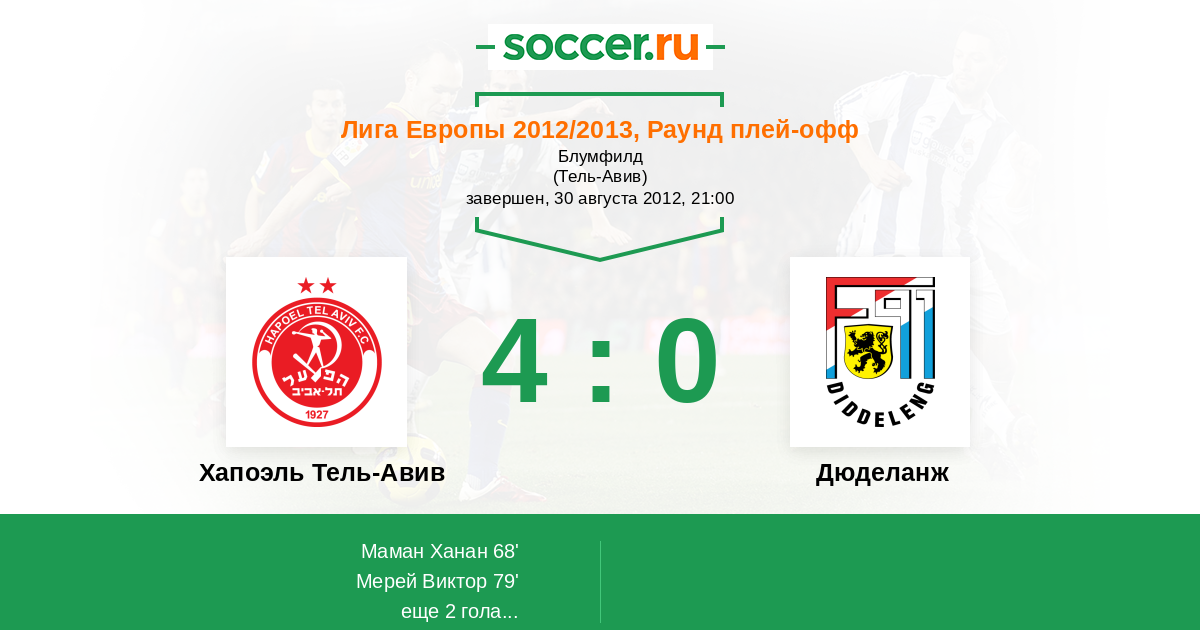 Протокол матча Хапоэль Тель-Авив против Дюделанж