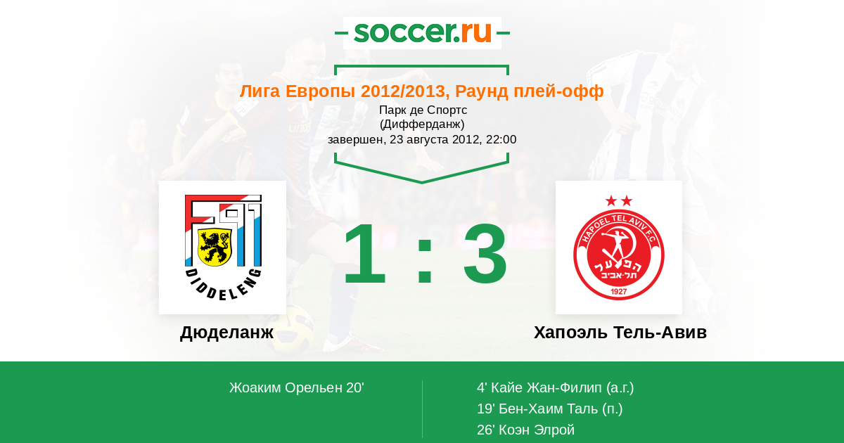 Протокол матча Дюделанж против Хапоэль Тель-Авив