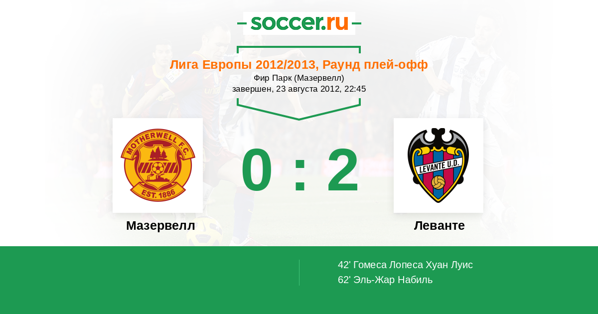 Протокол матча Мазервелл против Леванте