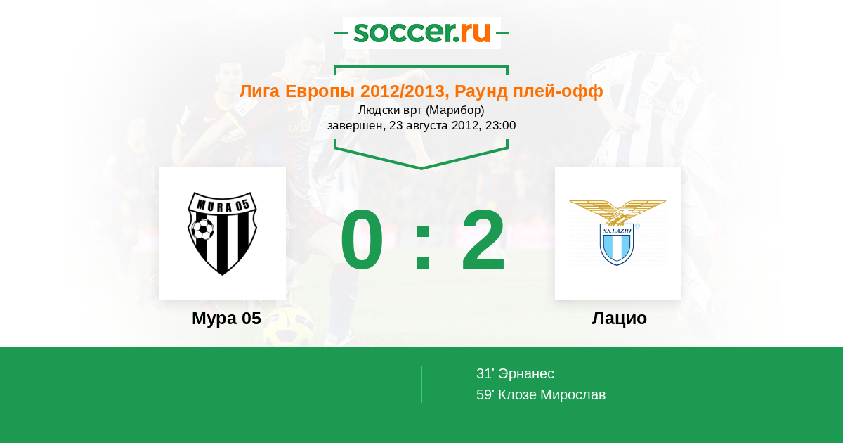 Протокол матча Мура 05 против Лацио
