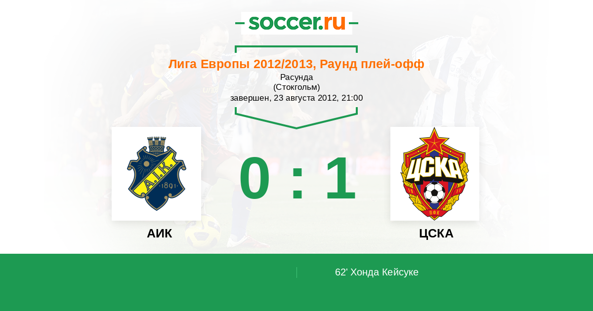 Протокол матча АИК против ЦСКА