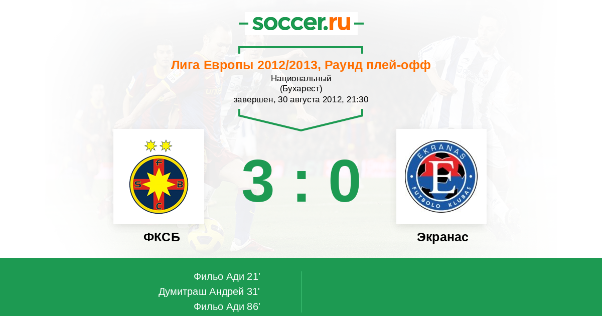 Протокол матча Стяуа против Экранас