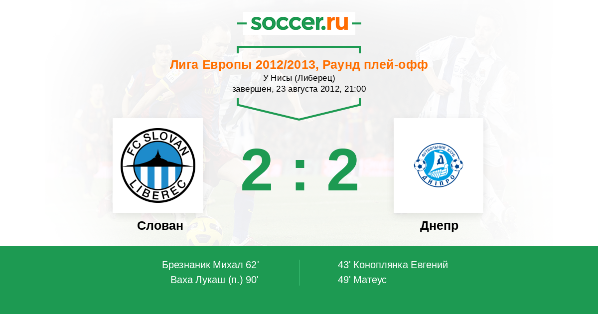 Протокол матча Слован против Днепр