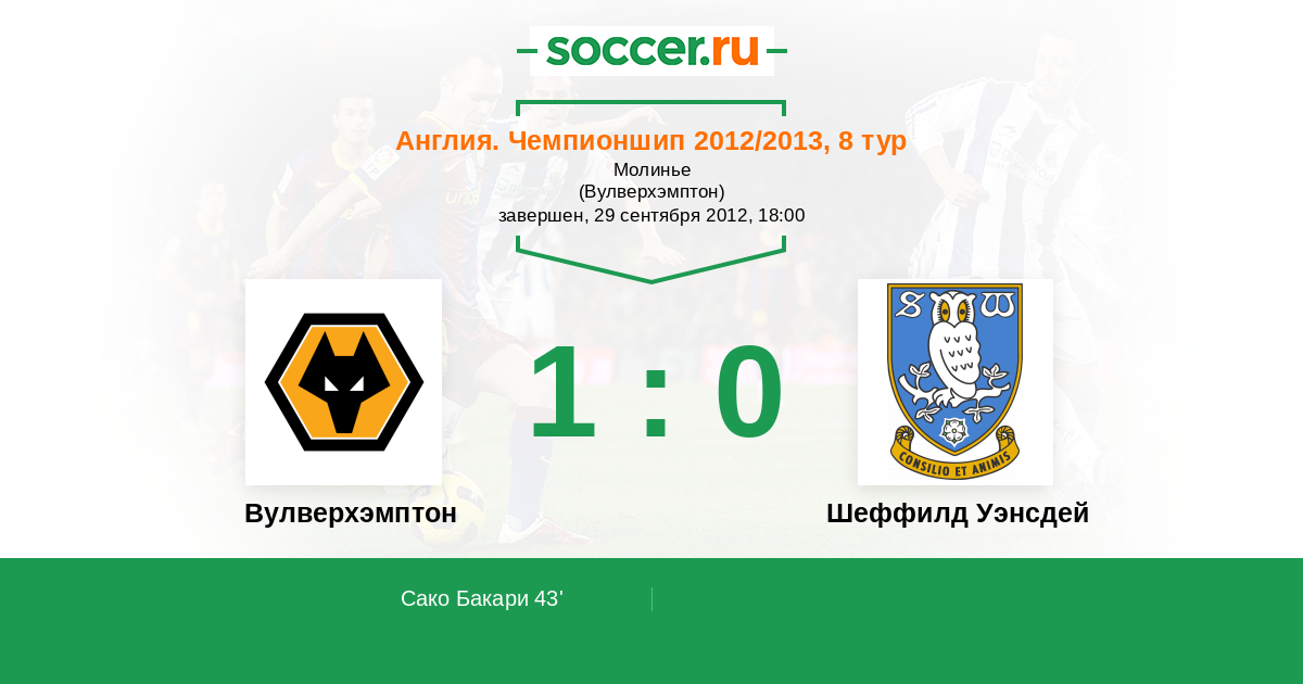 Протокол матча Вулверхэмптон против Шеффилд Уэнсдей