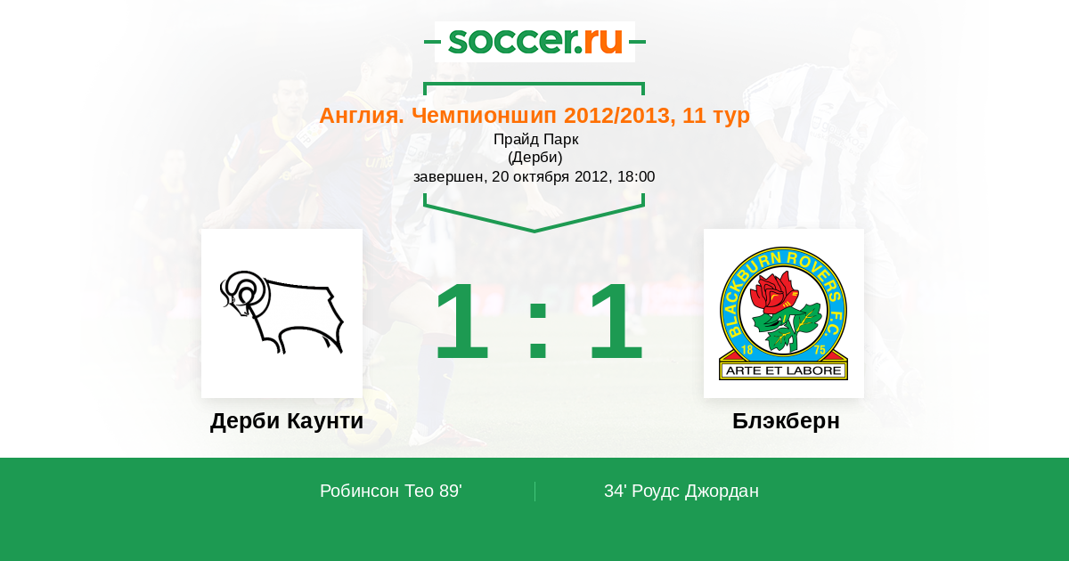 Протокол матча Дерби Каунти против Блэкберн