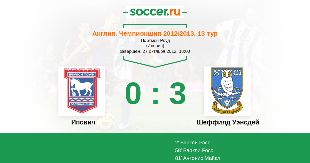 Протокол матча Ипсвич против Шеффилд Уэнсдей
