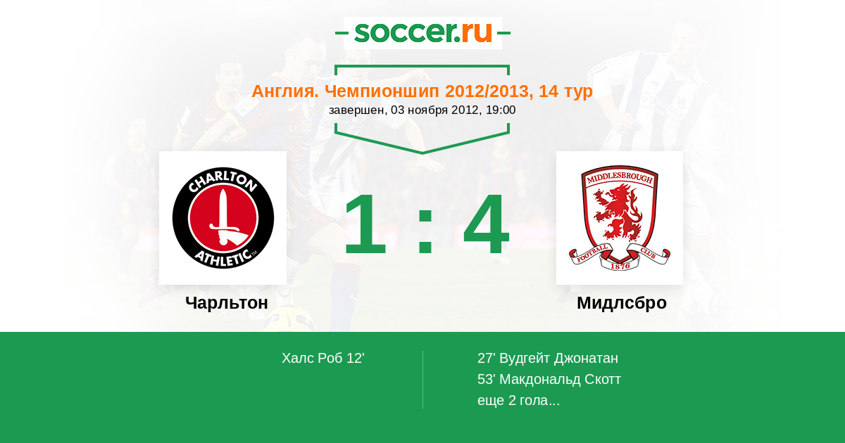 Протокол матча Чарльтон против Мидлсбро