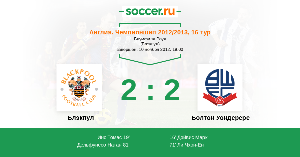 Протокол матча Блэкпул против Болтон Уондерерс