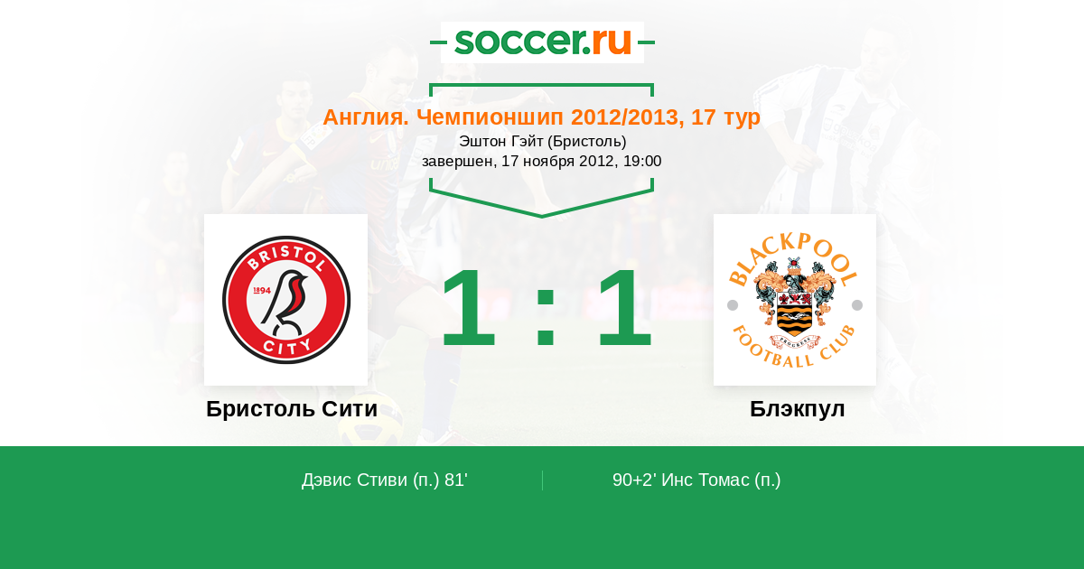 Протокол матча Бристоль Сити против Блэкпул