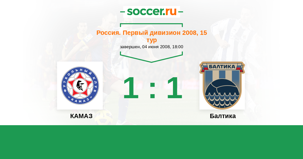 Россия. Первая лига 24.07.2007 КАМАЗ Логотип футбольный клуб КАМАЗ (Набережные Челны) 0:0 Логотип футбольный клуб Балтика (Калининград) Балтика