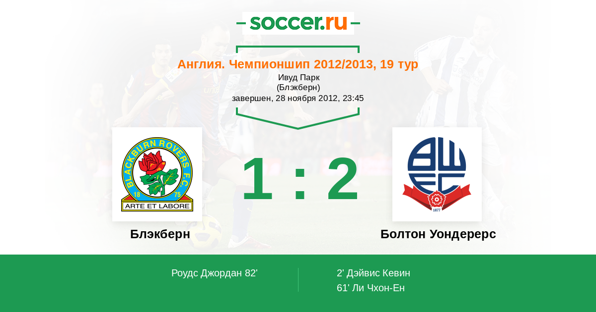 Протокол матча Блэкберн против Болтон Уондерерс