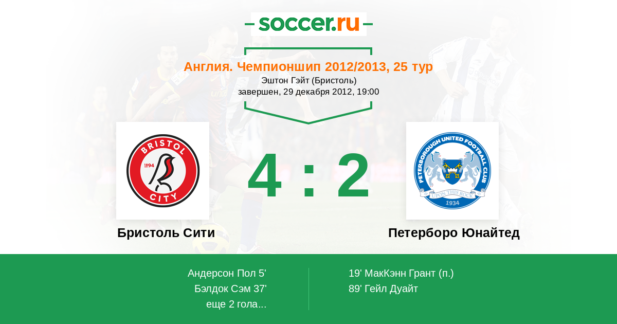 Протокол матча Бристоль Сити против Петерборо Юнайтед