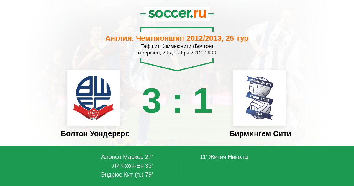 Протокол матча Болтон Уондерерс против Бирмингем Сити