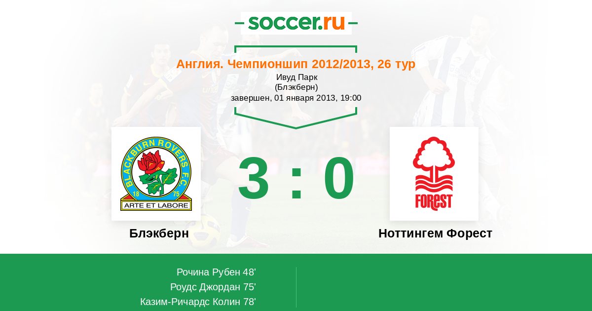 Протокол матча Блэкберн против Ноттингем Форест