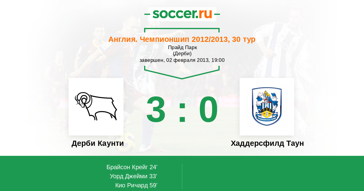 Протокол матча Дерби Каунти против Хаддерсфилд Таун