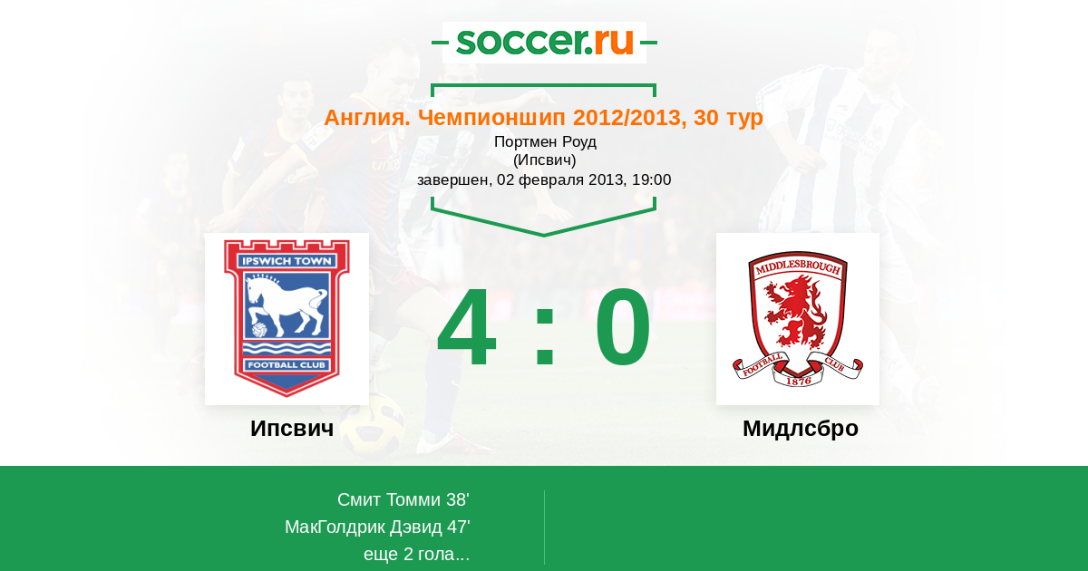 Протокол матча Ипсвич против Мидлсбро