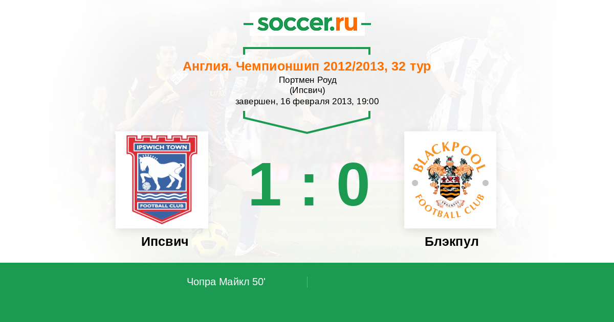 Протокол матча Ипсвич против Блэкпул