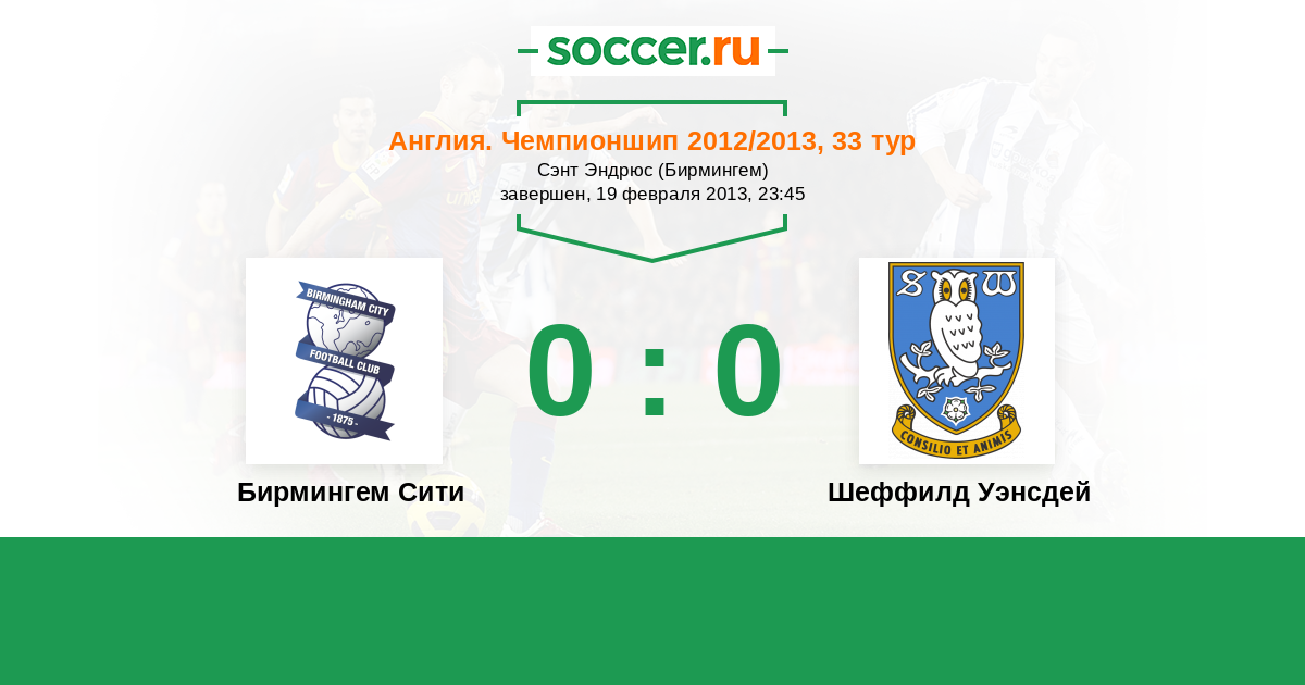 Протокол матча Бирмингем Сити против Шеффилд Уэнсдей