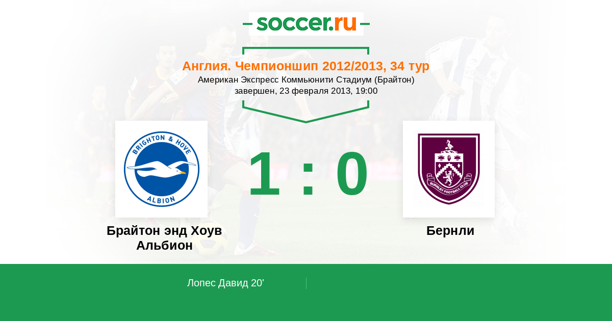 Протокол матча Брайтон энд Хоув Альбион против Бернли