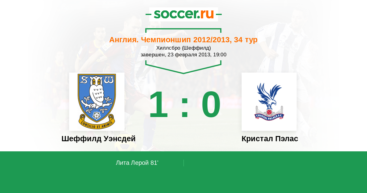 Протокол матча Шеффилд Уэнсдей против Кристал Пэлас