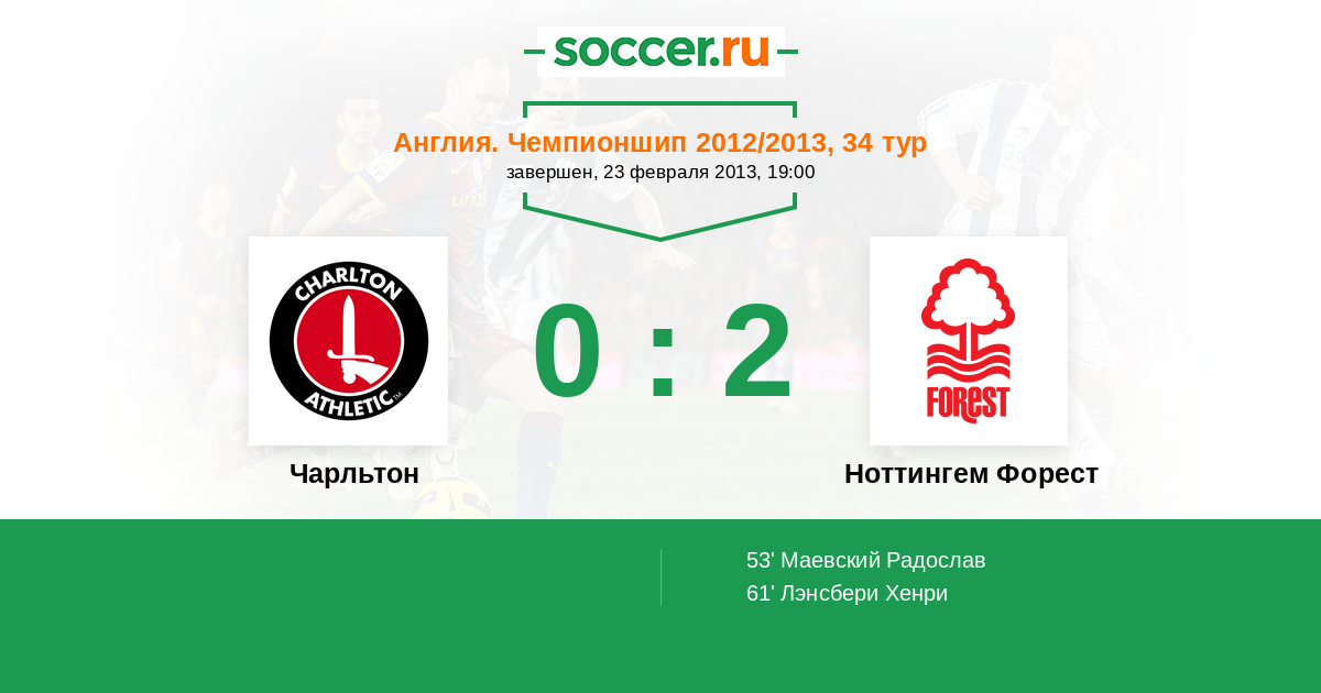Протокол матча Чарльтон против Ноттингем Форест