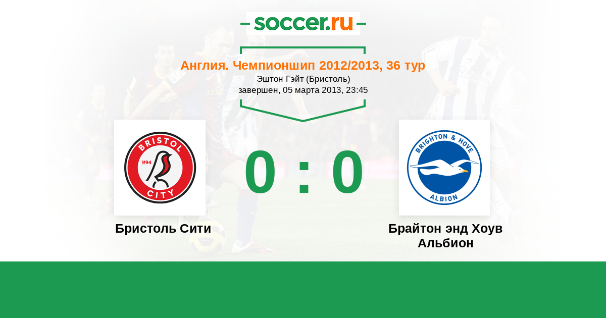 Протокол матча Бристоль Сити против Брайтон энд Хоув Альбион