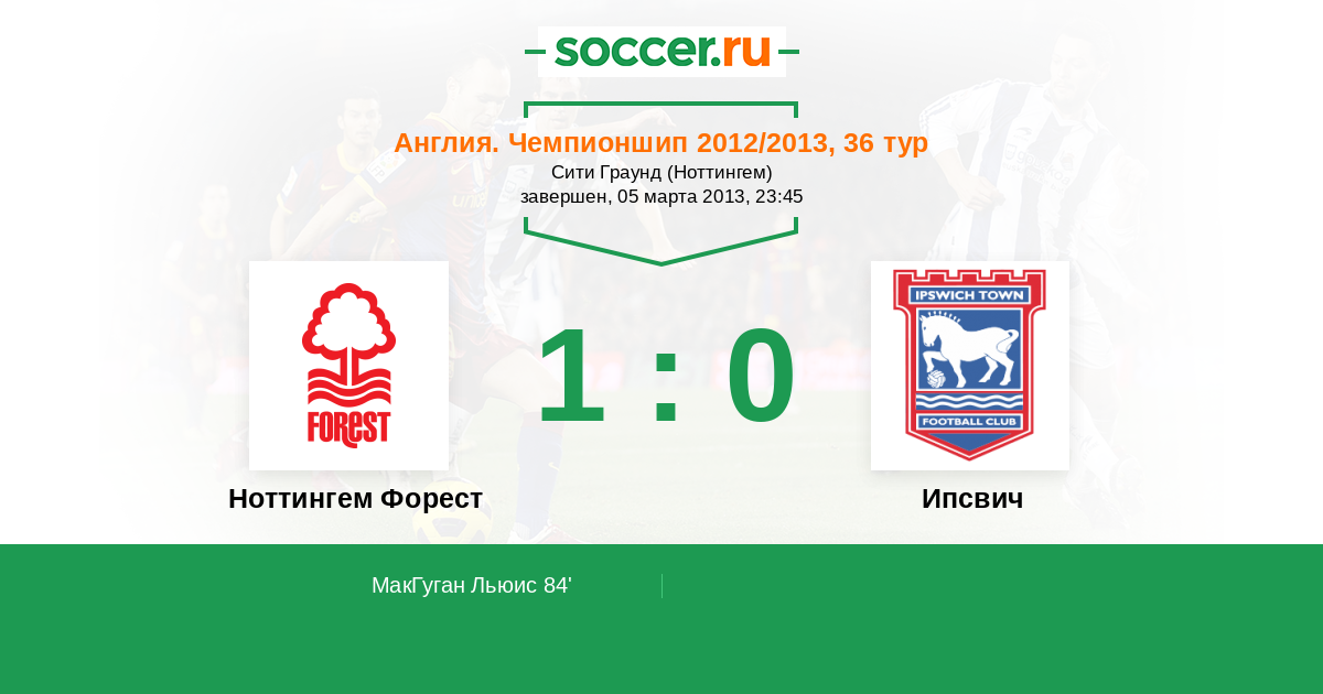 Протокол матча Ноттингем Форест против Ипсвич
