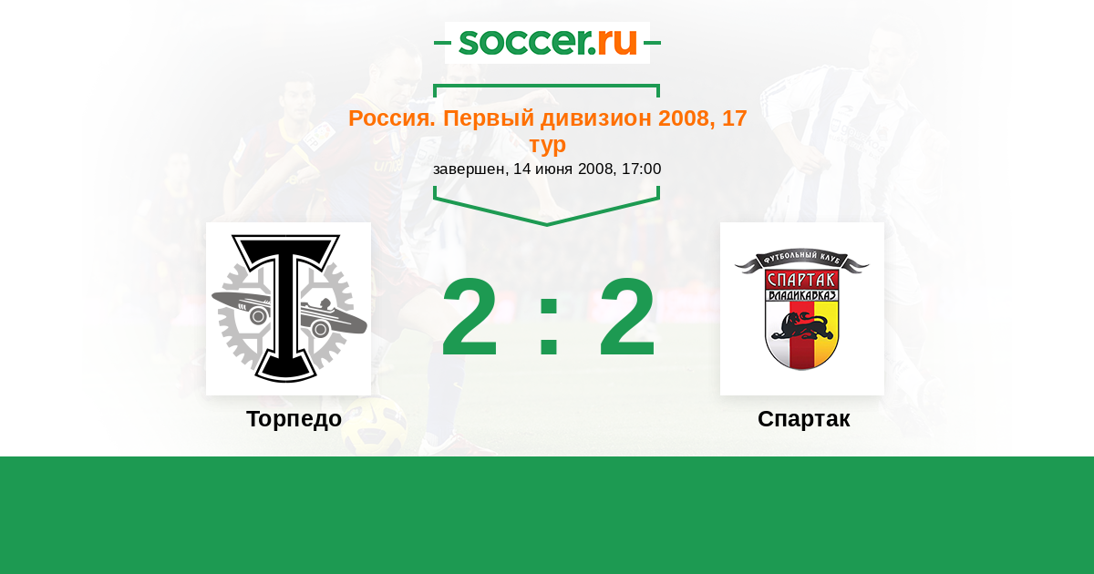 Россия. Первая лига 05.10.2008 Алания Логотип футбольный клуб Алания (Владикавказ) 1:2 Логотип футбольный клуб Торпедо (Москва) Торпедо