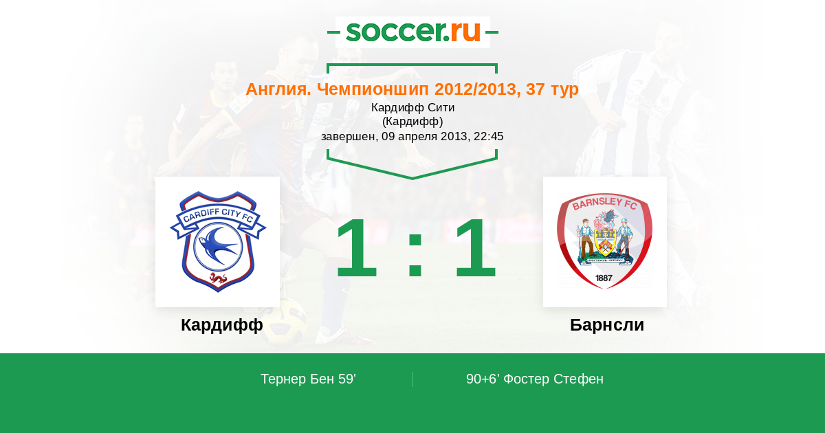 Протокол матча Кардифф против Барнсли