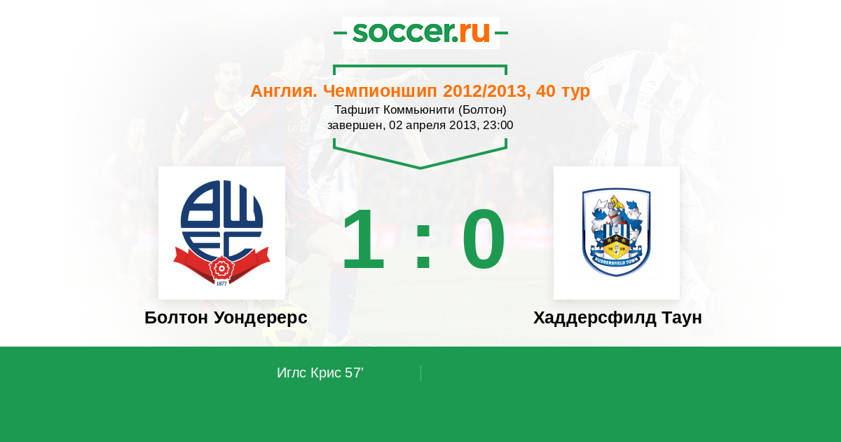 Протокол матча Болтон Уондерерс против Хаддерсфилд Таун