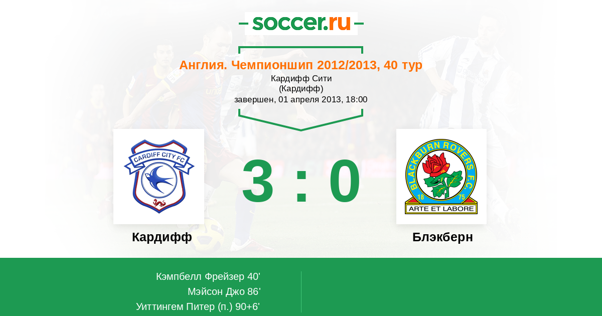 Протокол матча Кардифф против Блэкберн