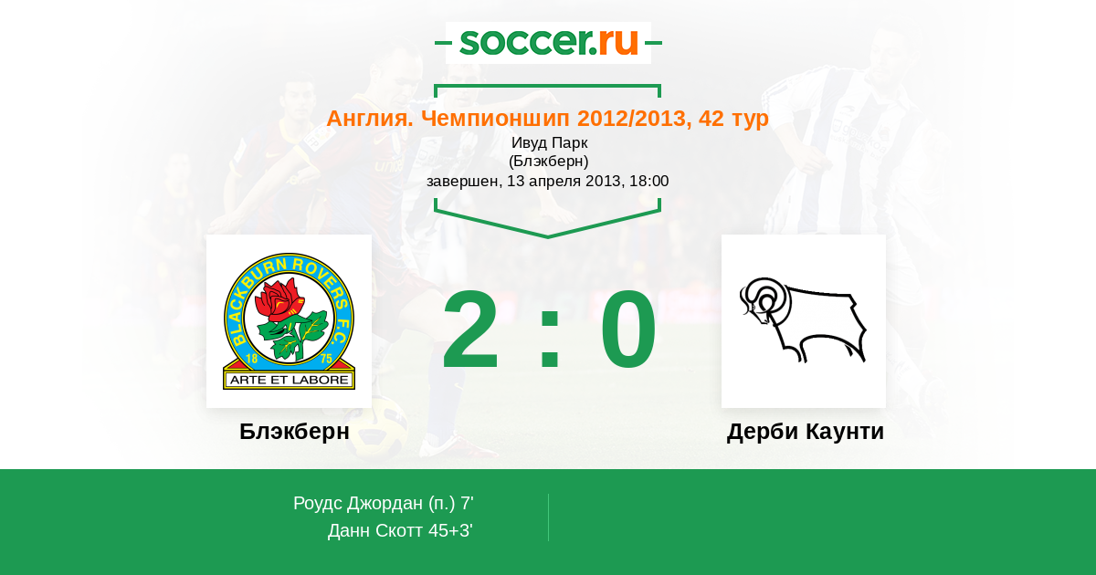 Протокол матча Блэкберн против Дерби Каунти