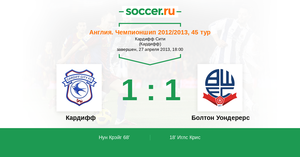 Протокол матча Кардифф против Болтон Уондерерс