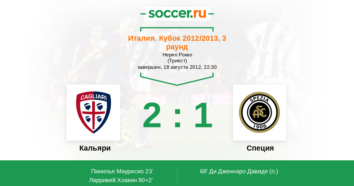 Протокол матча Кальяри против Специя