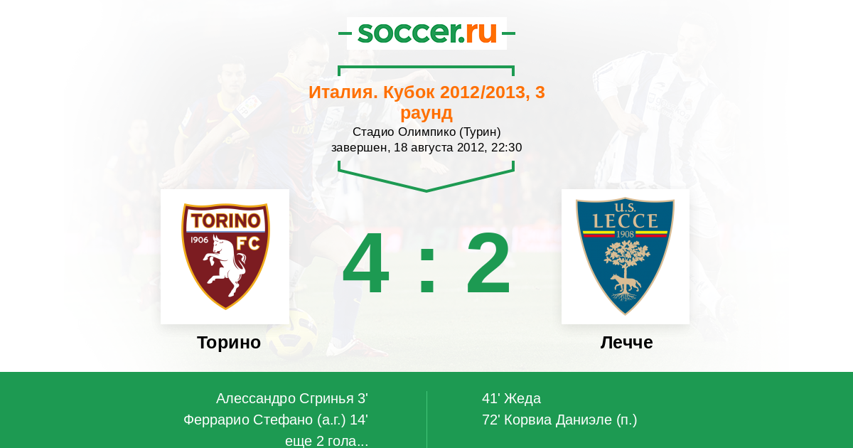 Протокол матча Торино против Лечче