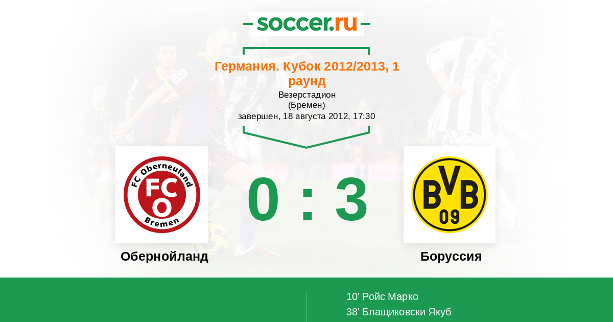 Протокол матча Обернойланд против Боруссия