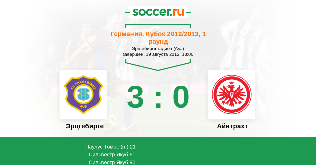 Протокол матча Эрцгебирге против Айнтрахт
