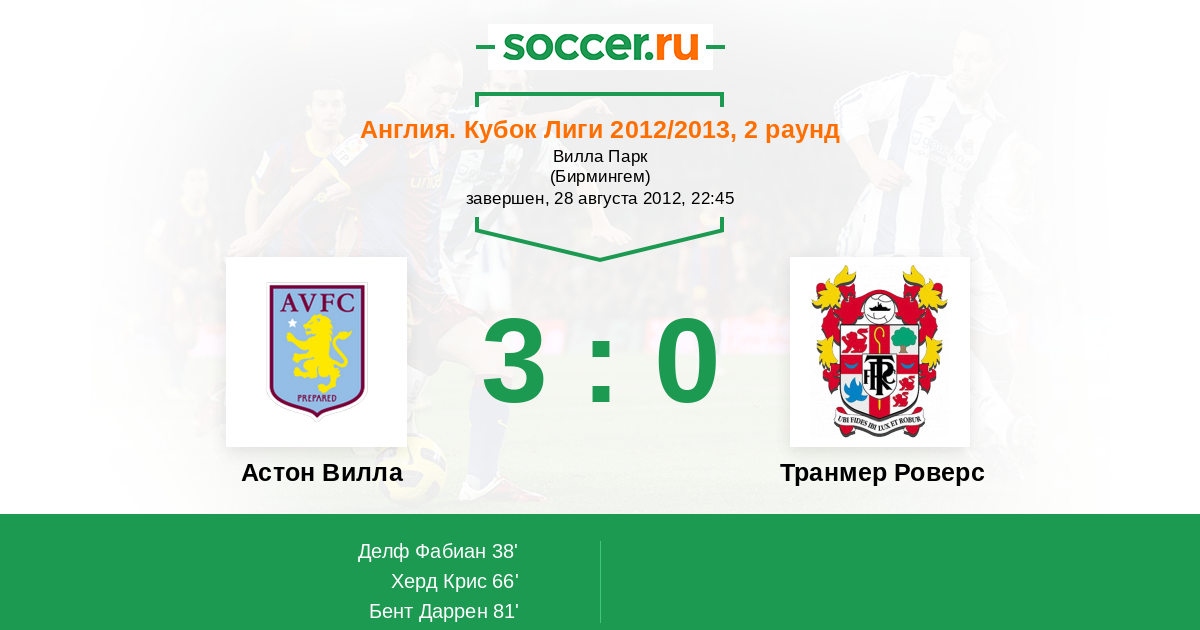 Протокол матча Астон Вилла против Транмер Роверс