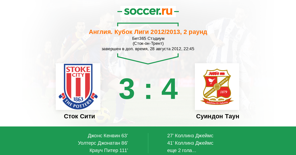 Протокол матча Сток Сити против Суиндон Таун