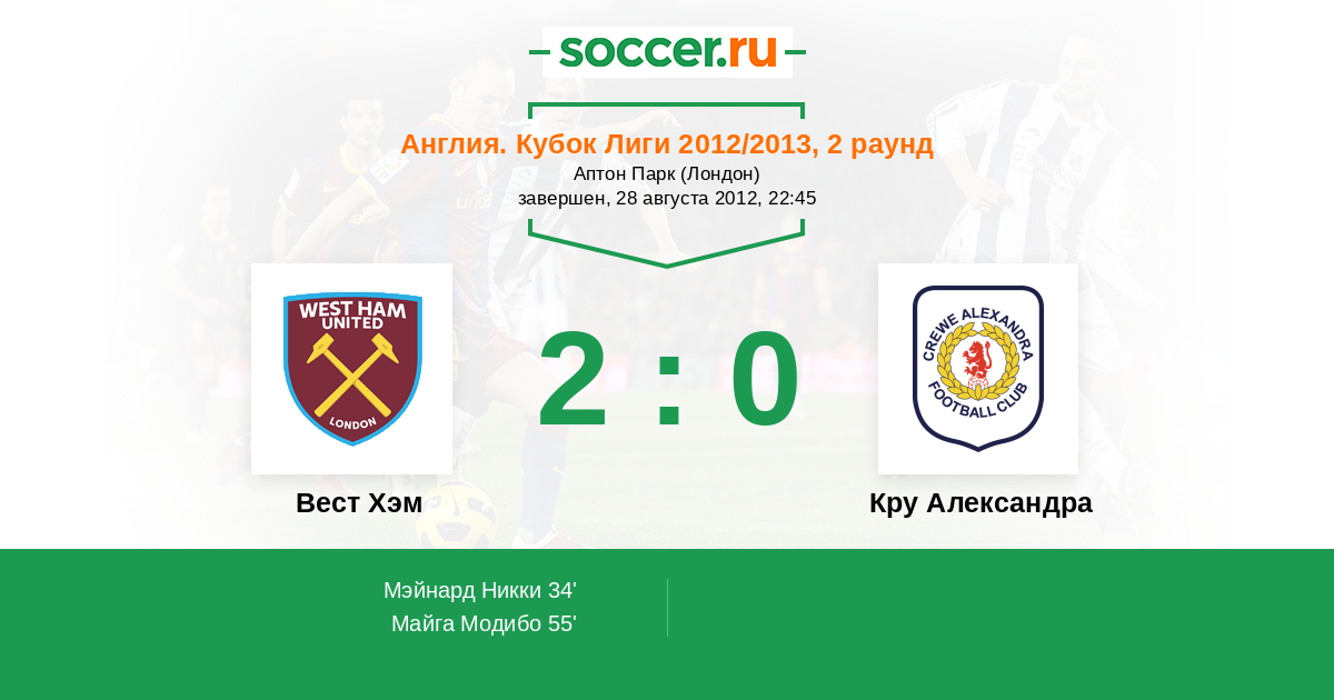 Протокол матча Вест Хэм против Кру Александра
