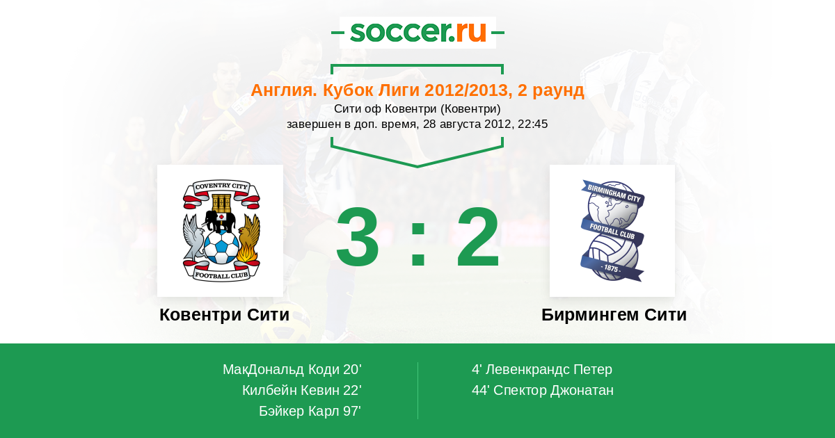Протокол матча Ковентри Сити против Бирмингем Сити