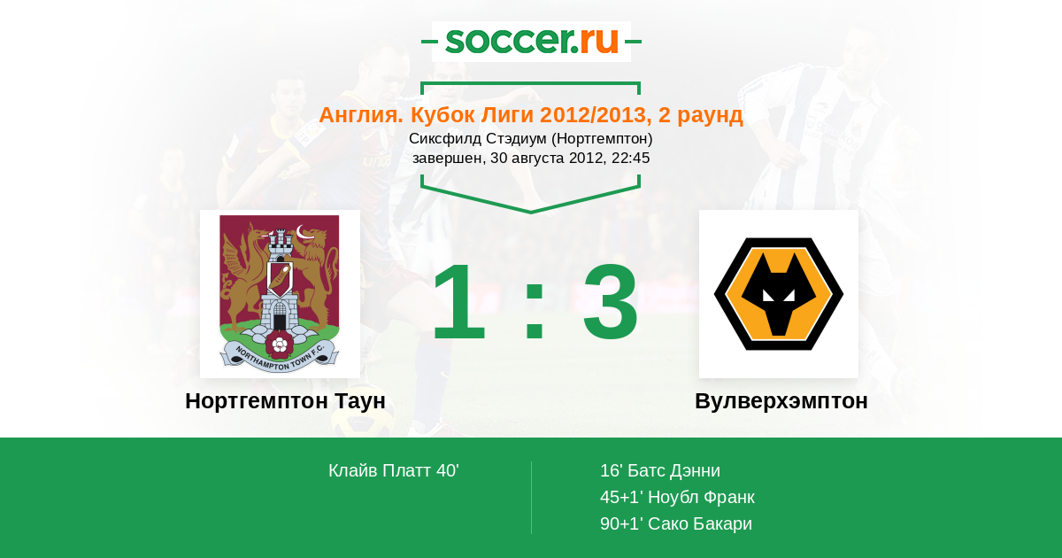 Протокол матча Нортгемптон Таун против Вулверхэмптон