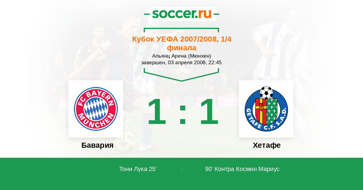 Протокол матча Бавария против Хетафе