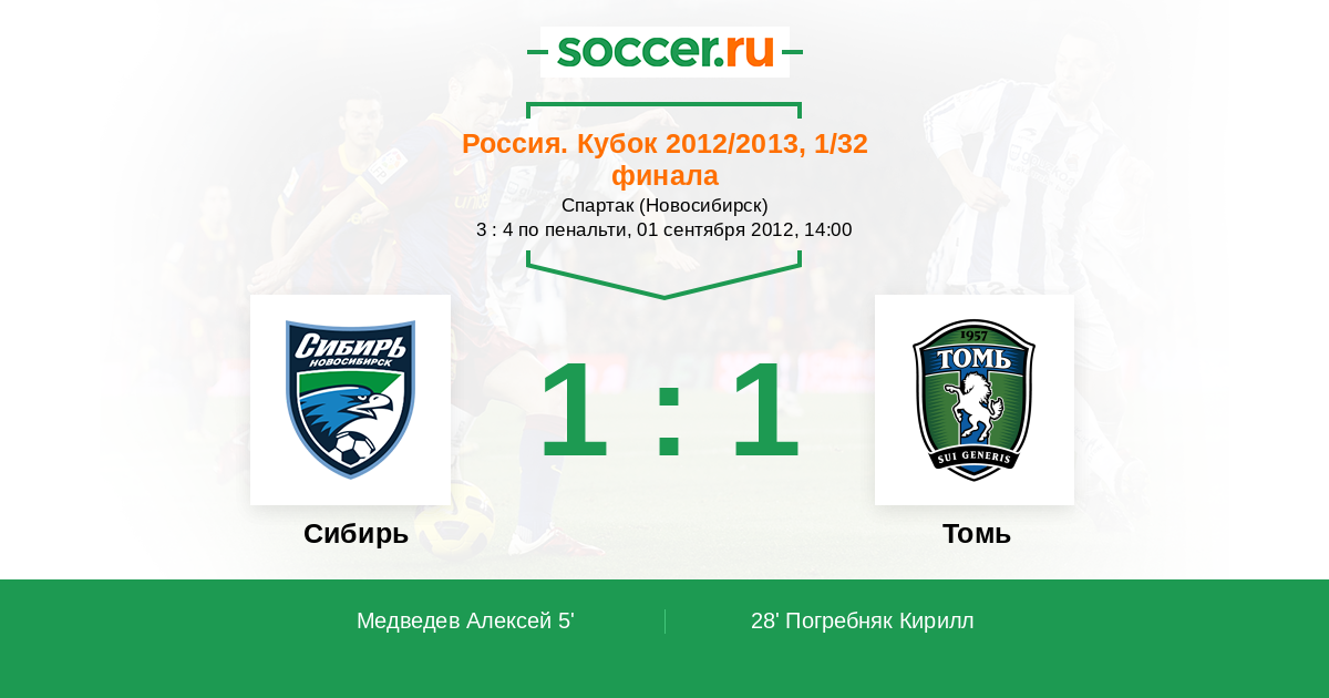 Протокол матча Сибирь против Томь