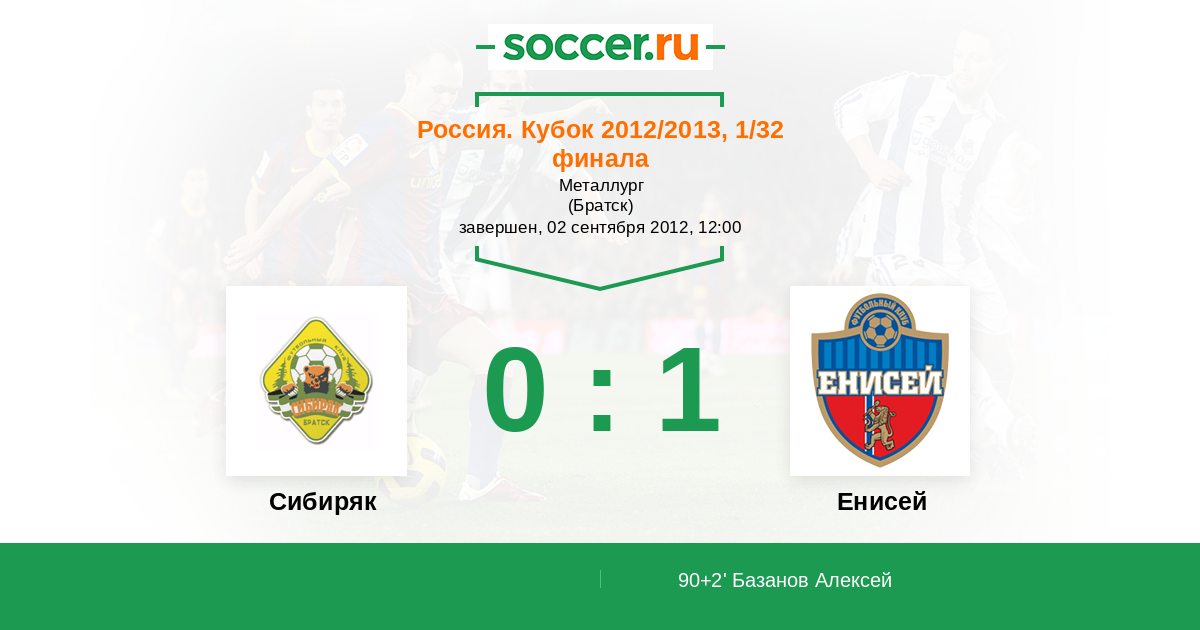 Протокол матча Сибиряк против Енисей